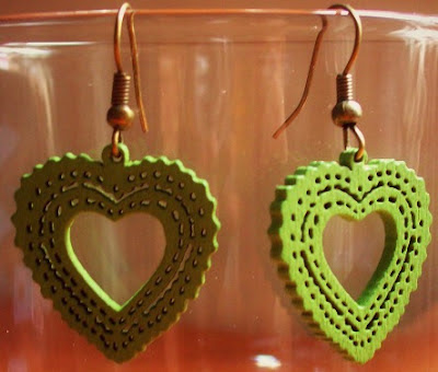 | Aretes Corazón de madera verde Materiales: Dije de corazón de madera Valor: $3.000 |